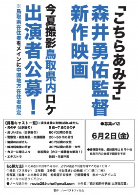 【募集(撮影地:鳥取県)】映画『こちらあみ子』の森井勇佑監督新作映画 出演者の募集について
